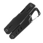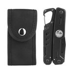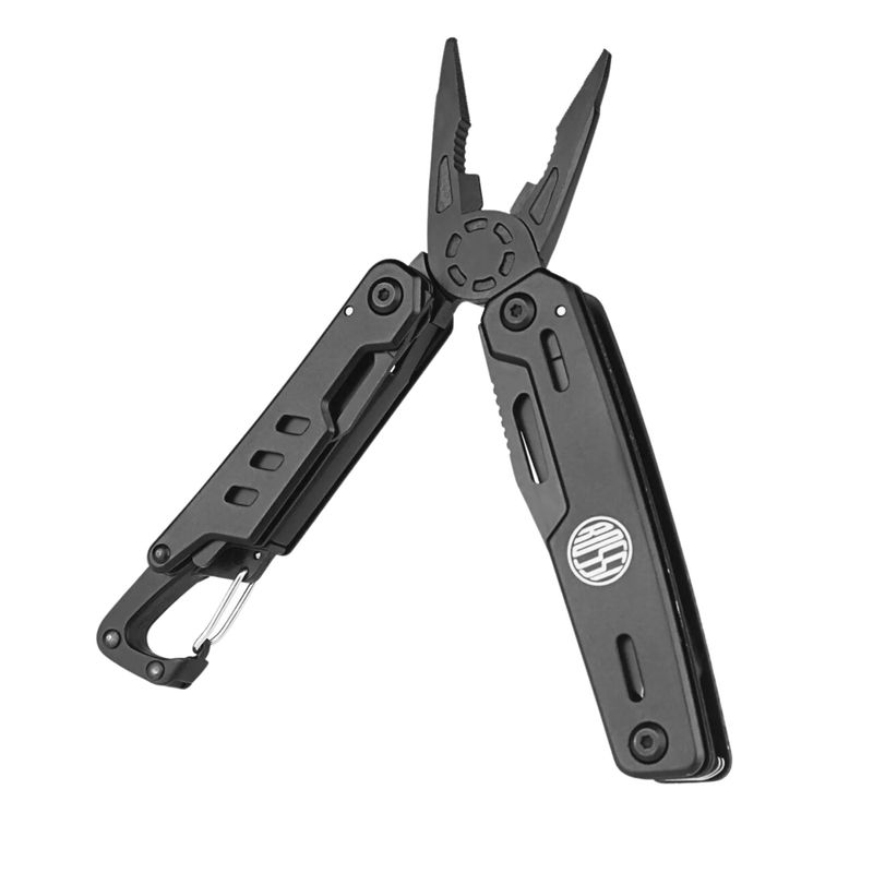 O Multitool Black é um equipamento feito para não deixar você na mão e oferecer muitas possibilidades de uso, tendo múltiplas funções: Canivete, lâmina serrilhada, abridor de garrafa, abridor de latas, chave phillips, chave de fenda, alicate, mosquetão, descascador de fios e cortador de fios/arame