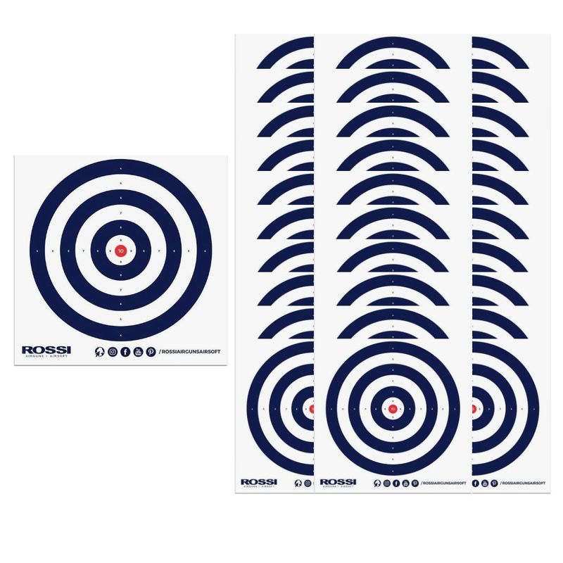 Kit com 30 alvos descartáveis Rossi, uma ótima escolha para você atirador ou operador treinar tiro ao alvo e lazer. Alvo 14x14 cm com pontuações, compatível com alvo coletor. Pode ser utilizado com armas de pressão e Airsoft.