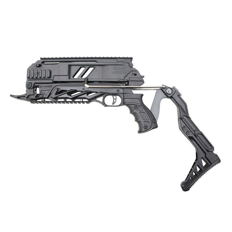 Seu mecanismo de armar automático reduz significativamente o esforço, permitindo uma operação confortável até mesmo em sessões prolongadas. A coronha ajustável garante ergonomia para diferentes perfis de atiradores, enquanto o punho dianteiro removível oferece maior controle e estabilidade.