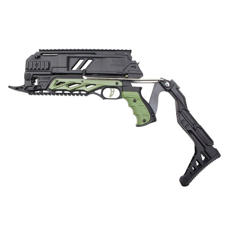 Seu mecanismo de armar automático reduz significativamente o esforço, permitindo uma operação confortável até mesmo em sessões prolongadas. A coronha ajustável garante ergonomia para diferentes perfis de atiradores, enquanto o punho dianteiro removível oferece maior controle e estabilidade.