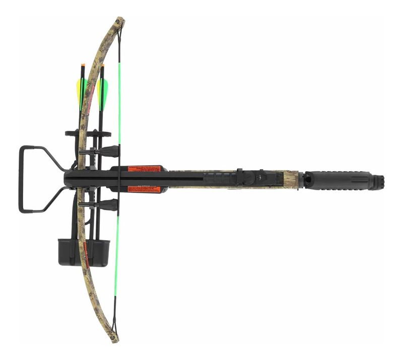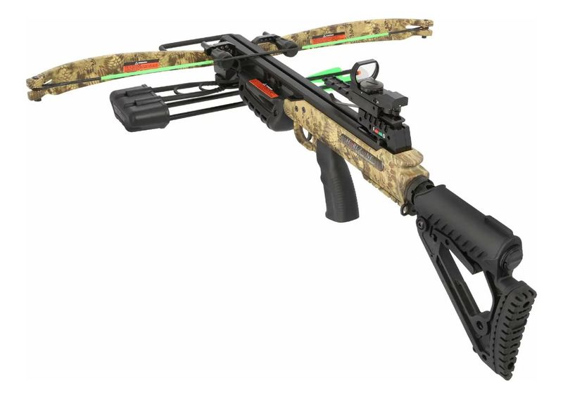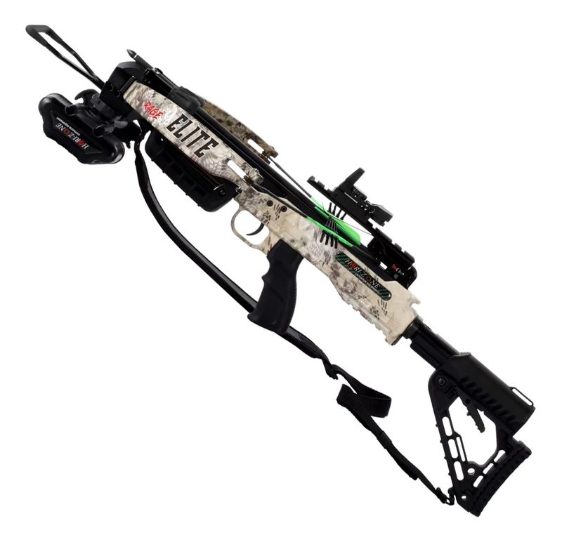 Construída com exclusivo camuflado desenvolvido pela Hori-Zone. Sua fabricação é com um limbo em fibra de vidro, corpo em alumínio e coronha em polímero.
