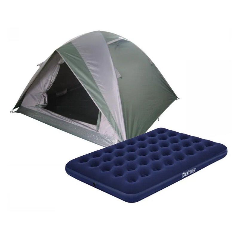 Barraca Guepardo News Venus Ultra PRO 4 Pessoas 2500mm Coluna D Agua - VD/CZ + Colchão Inflável Casal Multiuso Azul camping e casa - Bestway