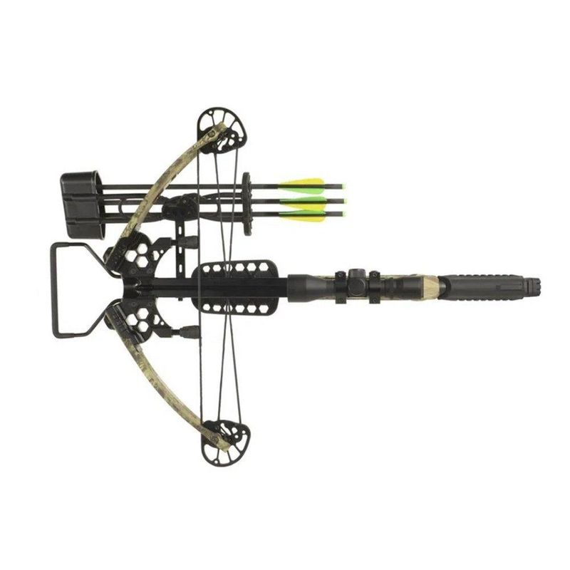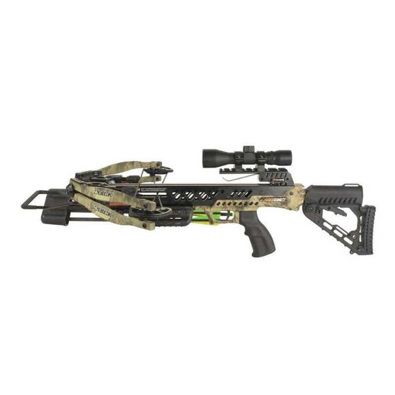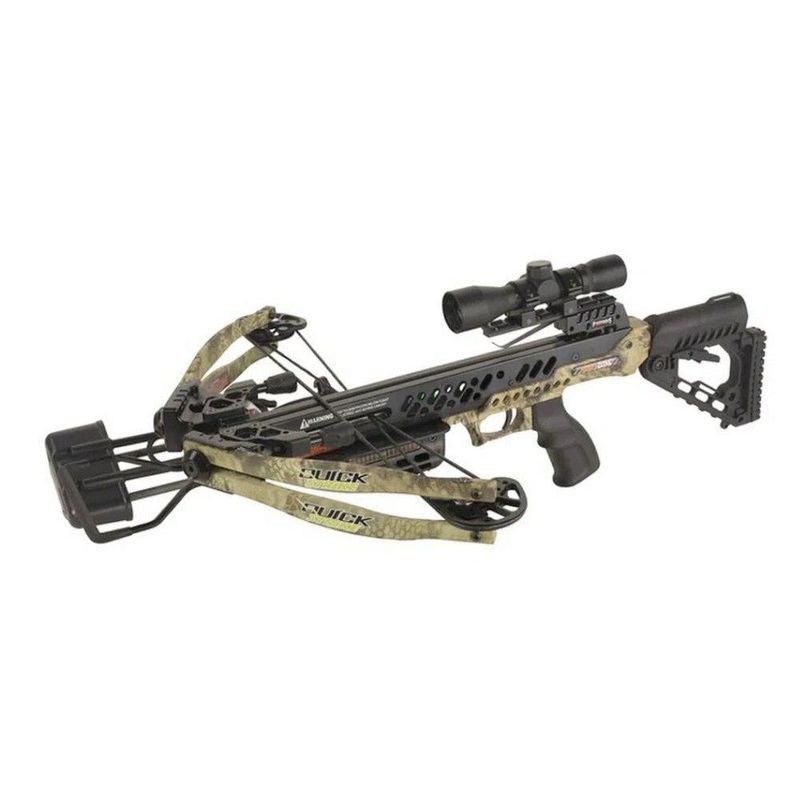 - Velocidade e Potência: A Quick Strike oferece uma velocidade impressionante de 375fps, tornando-a capaz de disparar flechas a uma grande distância com força suficiente para caça.Acompanhando a balestra, você recebe uma corda auxiliar, uma aljava para flechas, 3 flechas de fibra de carbono de alta qualidade e cera lubrificante para manutenção adequada.