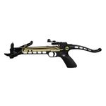 A balestra recurvo curta 80 lbs da Man Kung é uma mini besta, do tipo pistola com potência de 80 libras, que impressiona pelo seu acabamento, proporcionando uma aliança de beleza, potência e inovação.