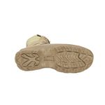 A COMANDO NANOX vem equipada com o solado Carbom Grip EXTREME TACTICAL. Um solado agressivo e moderno, com diferentes zonas de tração, frenagem, estabilização e ângulos de entrada das pisadas que respeitam a biomecânica da marcha humana. Os ângulos dos ‘lugs" foram projetados para formarem sempre um “V” para fazer com que a lama ou a neve sempre se desprenda do solado durante a caminhada, com isso ganha-se muito mais aderência mesmo em situações extremas. Também se aumentou a área de contato com o solo em mais de 50% melhorando com isso a distribuição da pressão plantar, a resistência à abrasão e o Grip. A borracha utilizada é sem duvida um dos destaques deste solado. Utilizamos mais de 70% de composto de borracha de pneus automotivos obtendo com isso um ganho fantástico em aderência, resistência e segurança. A adição de borracha de pneus automotivos, que é muito cara, se tornou possível porque a VENTO fez um acordo com os fabricantes de pneus e compra a parte da borracha que sobra do processo de fabricação dos pneus e que seria descartada. Desta forma, além de ajudarmos o meio ambiente e conseguimos uma qualidade realmente surpreendente. A diferença deste solado para a versão "civil" é que nele se aumentou a resistência ao calor, resistindo à 300 graus Celsius por um minuto, para situações onde é necessário pisar sobre brasa ou chamas, e foi colocou-se um composto que diminui o ruído ao se caminhar.