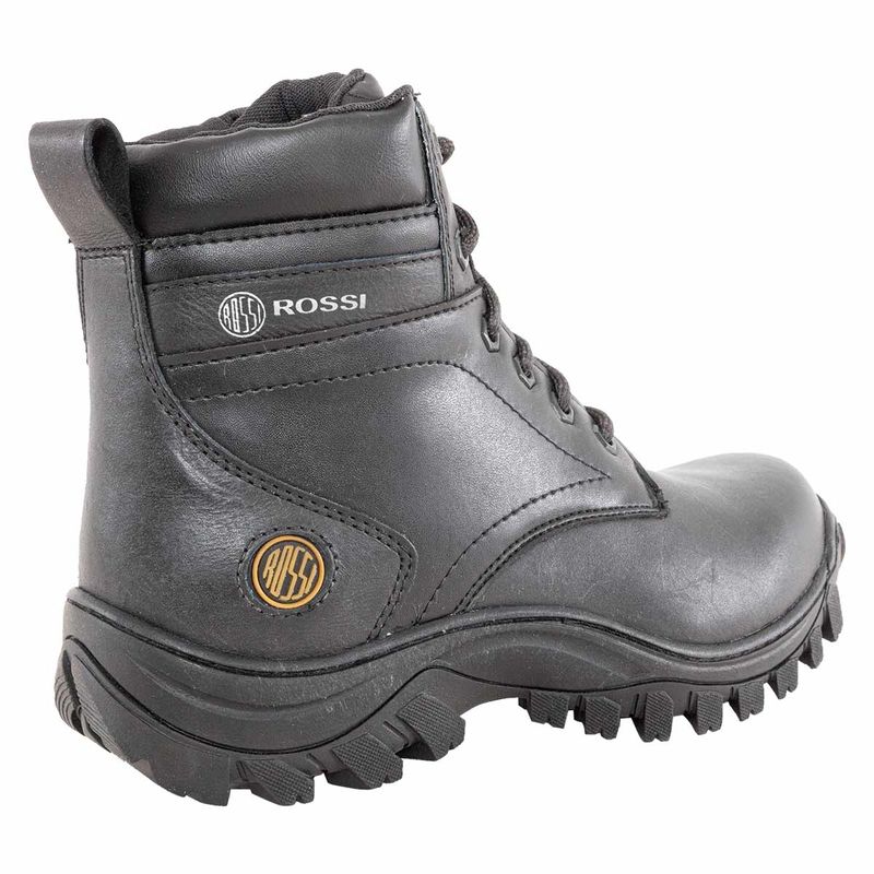 Bota Tática Latego Preto - Rossi! Com canais resistentes à água e óleo, apresenta solado ergonômico e de alta performance, capaz de suportar as mais altas temperaturas.