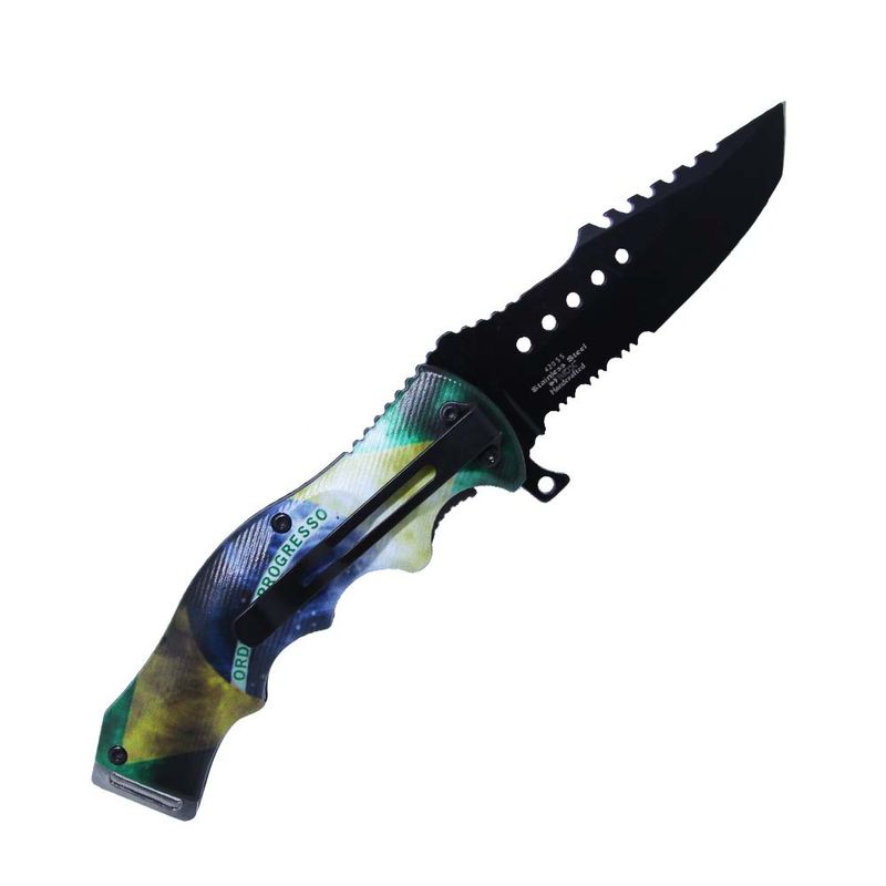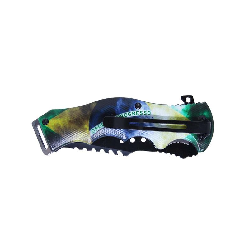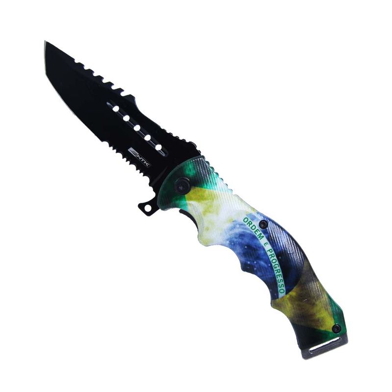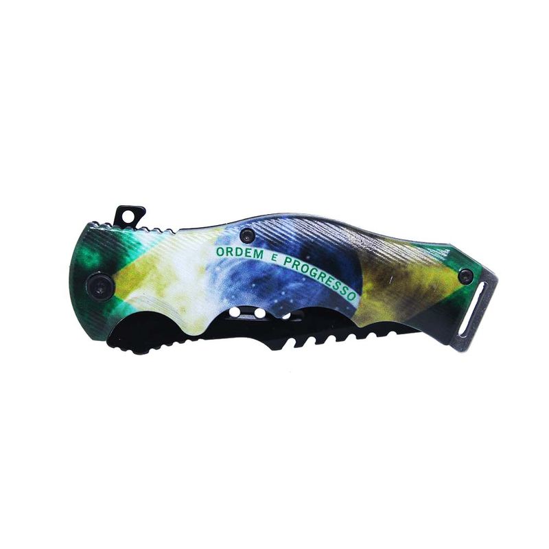 Canivete Nautika Patriota O Patriota é um modelo de canivete inspirado na bandeira do Brasil! O Canivete NTK Patriota é prático, leve e de fácil manuseio, sendo essencial em situações de emergência e sobrevivência. Os canivetes atualmente são uma parte essencial do equipamento de praticantes de pesca, esportes radicais, resgate, etc. Seu acabamento exclusivo, permite aos amantes de cutelaria um produto durável e de qualidade. Ele vem com lâmina em aço inox, trava de segurança e orifícios na parte inferior, que o permitem ser amarrado em qualquer local. Sua lâmina ainda serra nos dois lados, para o melhor corte nas mais diversas situações. É um item seguro, preciso e extremamente durável em suas aventuras táticas ou até mesmo outdoor.