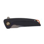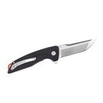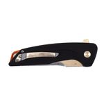 O cabo em G10 (fibra de vidro) oferece pegada firme, leveza e resistência a impactos, além de um visual tático e discreto em preto fosco. Conta ainda com orifício para cordão porta-fiel, agregando praticidade ao transporte.