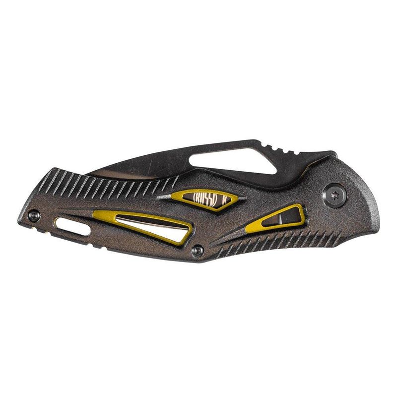 A lâmina, com comprimento de 75 mm e espessura de 2,0 mm, é feita de aço inoxidável 420. Este material é renomado por sua resistência à corrosão e durabilidade, garantindo cortes precisos e duradouros.
