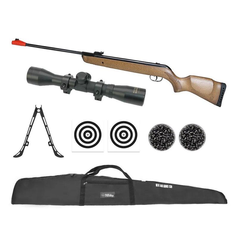 Carabina de Pressão Big Cat Hunter Mola Madeira 5,5mm - Gamo + Capa + Chumbo + Alvos + Bipé