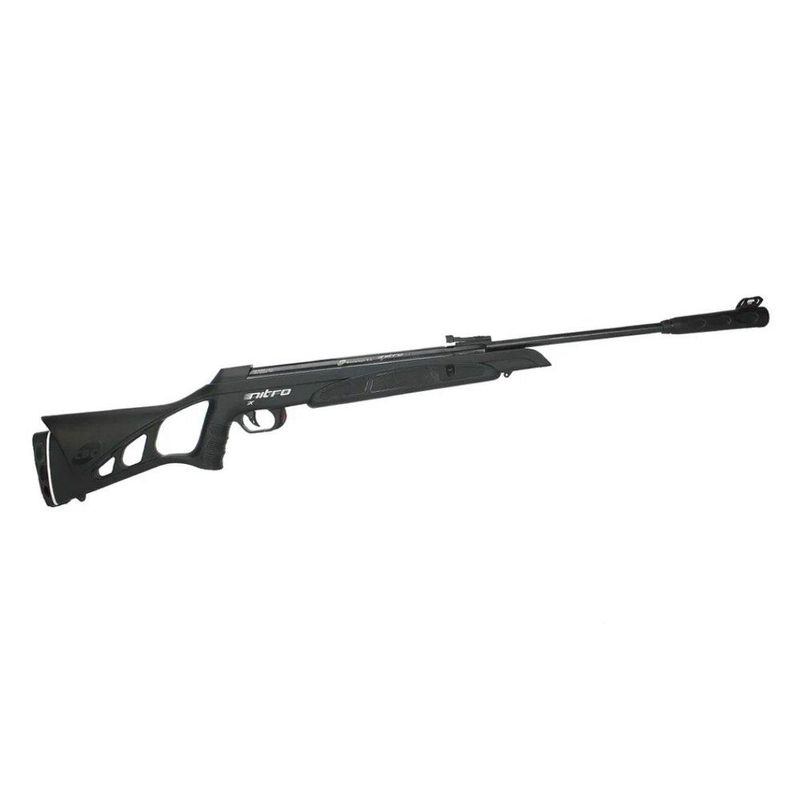 Ficha Técnica - Marca: CBC - Modelo: Nitro-X 1000 - Calibre: 5.5mm - Modo de Ação: Nitro Gás Ram - Material da Coronha: Polímero - Estilo da Coronha: Thumbhole - Material do Cano: Raiado em Aço - Acabamento do Cano: Oxidado - Velocidade: 1000 FPS - 305 m/s - Potência: 42 Joules - Muzzle Break: Sim - Modo de Disparo: Single Shot (Monotiro) - Capacidade de Tiro: 1 Chumbinho por Vez - Engatilhamento: Basculamento do Cano (Break Barrel) - Força para Engatilhar: 27kg - Alça e Massa de Mira: Sim, com Fibra Óptica - Alça de Mira: Com Ajuste Horizontal e Vertical - Massa de Mira: Fixa com Túnel Removível - Gatilho: Ajustável em Dois Estágios (Curso e Peso) - Trava de Segurança: Manual Localizada no Gatilho - Sistema de Segurança: Evita Disparos com o Cano Aberto - Suporte para Bandoleira (Zarelho): Sim, Integrado a Coronha - Soleira: Elastômero com tecnologia Tube - Peso: 3,200KG - Comprimento Total da Carabina: 115cm