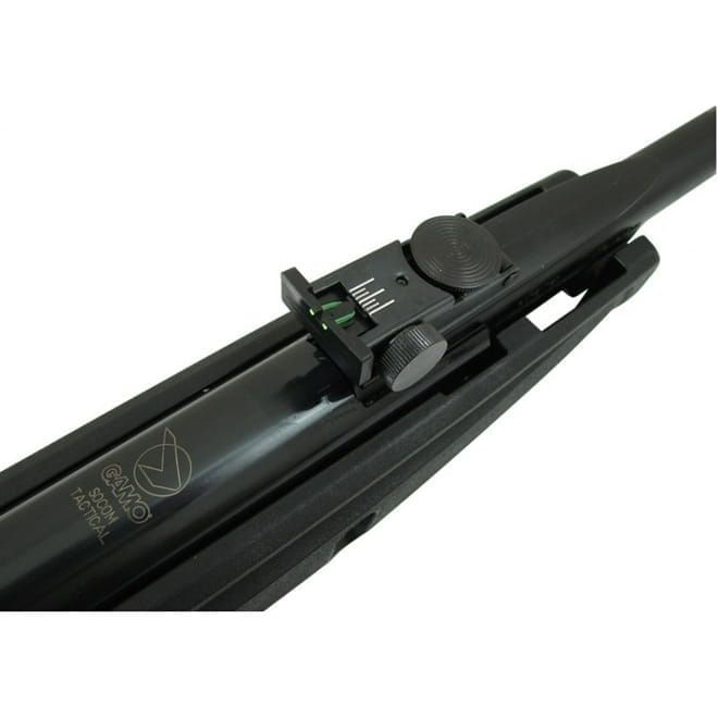 Quem já experimentou sabe também que a mira das carabinas GAMO são um show à parte. Com a fibra óptica bem fininha, fazer a mira fica muito mais fácil.