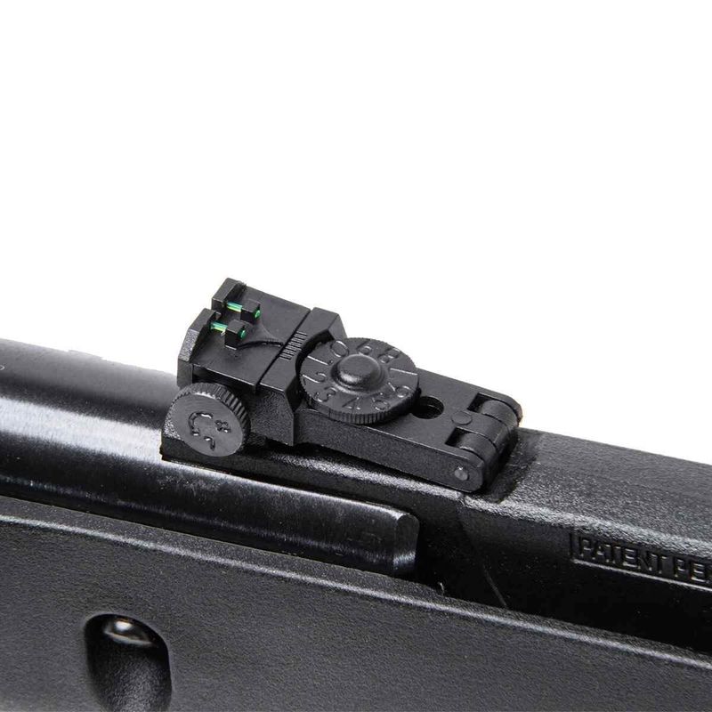 Contém gatilho com lâmina de polímero ajustável. Conjunto de mira aberta com fibra óptica TRUGLO com regulagem horizontal e vertical. Trilho superior com 11mm 20mm para fixação de lunetas, red dots ou acessórios.