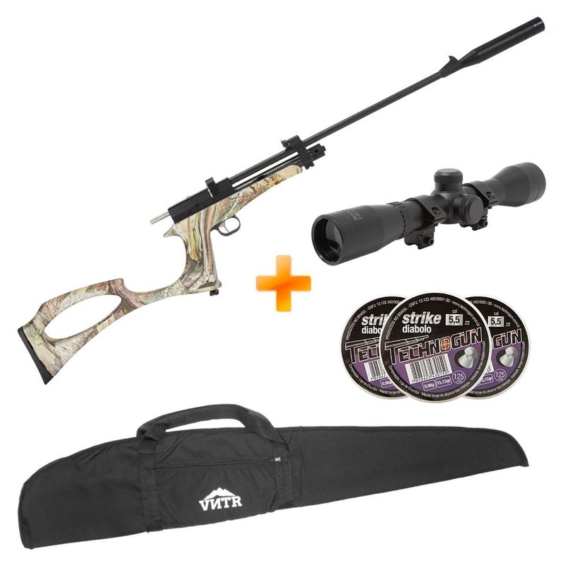 Carabina de Pressão Híbrida CO2 Cobra Camo 5.5mm - QGK + Luneta 4x32 + Capa + Chumbinho