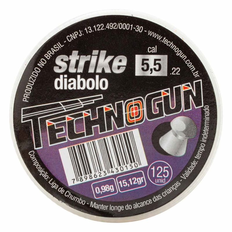 E por ultimo, o kit conta com Chumbinho Strike Diabolo da Technogun de ótima precisão e agrupamento em tiros de alto impacto.