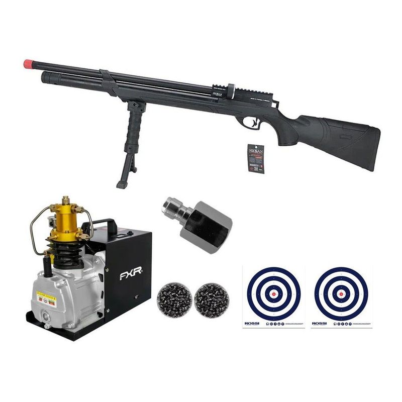 Carabina de Pressão PCP NKS Archero S 5,5mm - Niksan Defense + Compressor 4500PSI 300Bar 110V + 2 Caixas de Chumbos + Alvos