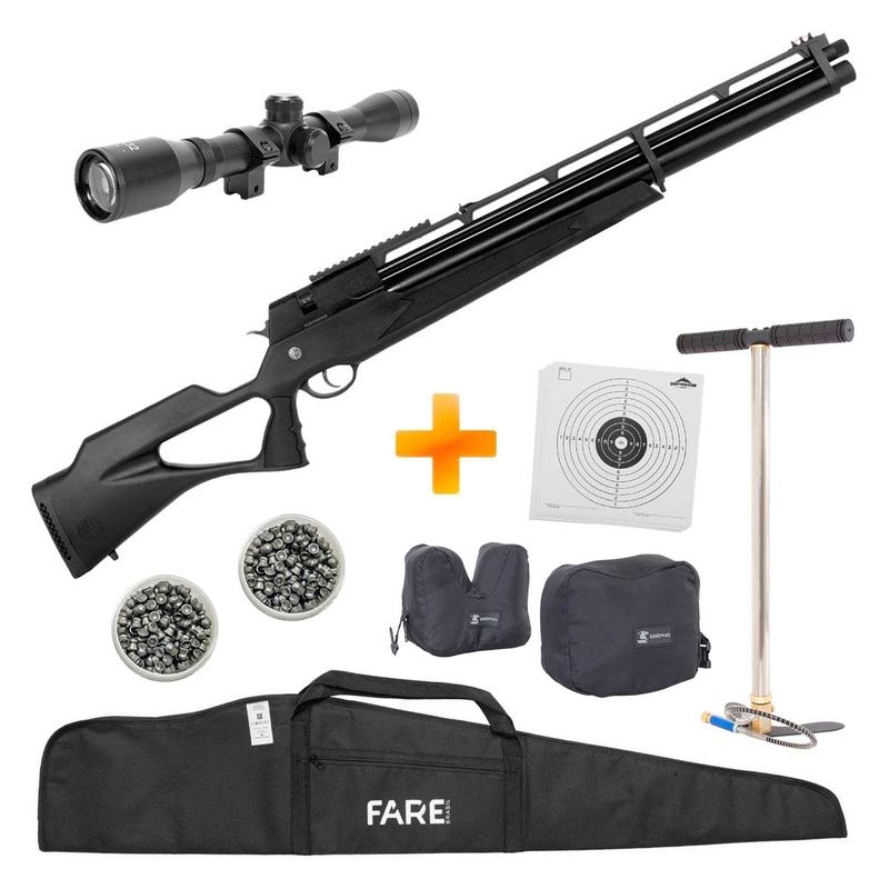 1x Carabina de Pressão 1x Bomba Manual 1x Luneta 1x Sand Bag 1x Capa 1x Chumbinhos 6.35mm 10x Alvos |