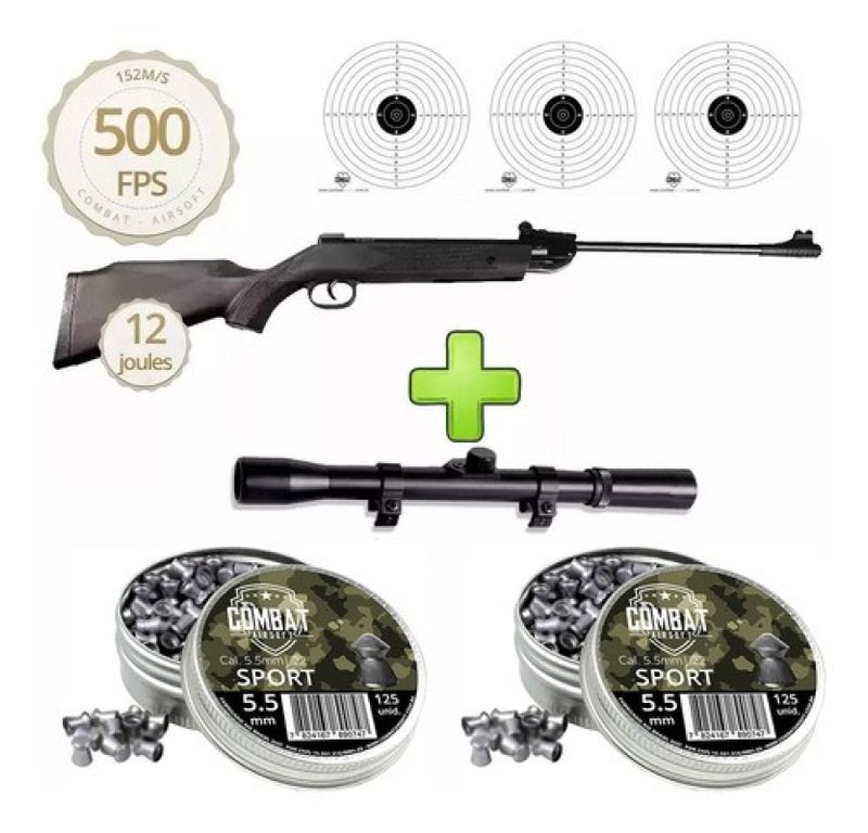 Espingarda Chumbinho 5.5 Qgk14 Black Edition + Luneta + Chumbo Carabina importada que chega ao mercado como equipamento de entrada com o melhor custo benefício.