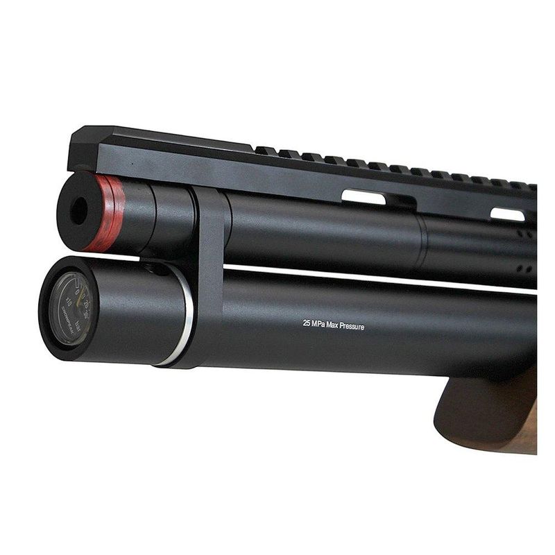 Conta também com trava de segurança manual localizada no gatilho, evitando que sua arma realize disparos acidentais. Além disso, possui manômetro integrado, ideal para verificar a pressão inserida em sua carabina.
