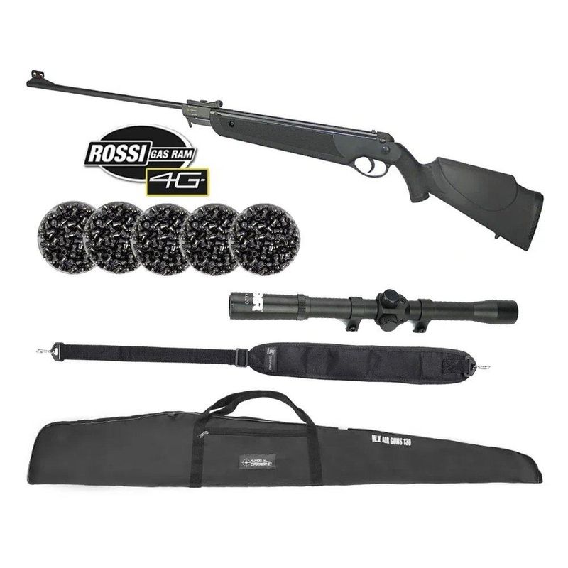 Carabina de Pressão Dione 4G 5,5mm Gas Ram 55kg Instalado - Rossi + Capa + Luneta 4x20 + Chumbos + Bandoleira