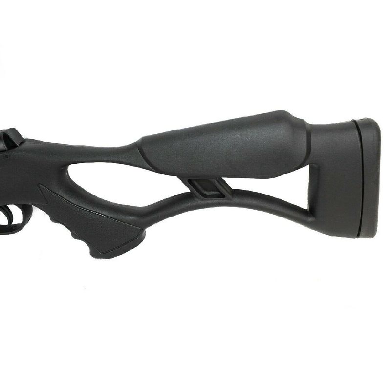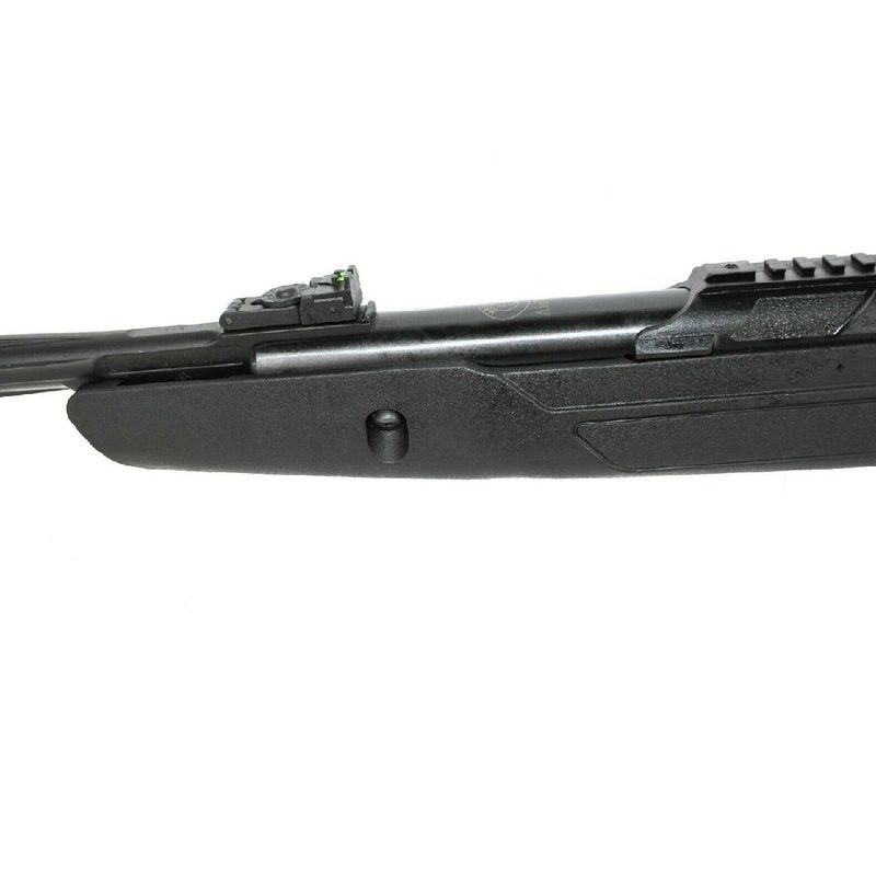 Carabina Pressão Mola Airtact ED 5.5mm - Hatsan Carabina Airtact ED fabricada pela renomada Hatsan, empresa turca que está a anos no mercado, oferecendo Armas de pressão com alta qualidade e desempenho. No calibre 5.5 mm (.22) chega a velocidade de 245 m/s, podendo variar conforme munição utilizada. A capacidade de recarga é de um chumbinho por vez, ou seja, tiro a tiro. É uma carabina com grande poder destrutivo e que também entrega ótimo agrupamento e disparos precisos. Possui soleira emborrachada que amortece o recuo, tornando o uso da carabina mais confortável. A coronha é do tipo Thumbhole com estilo Montecarlo na cor preta e é fabricada em polímero de alta densidade que tem grande durabilidade. Cano com supressor de ruído integrado. O cano é fabricado em aço e raiado e possui 370 mm de comprimento. A Hatsan Airtact ED possui gatilho ajustável para se adequar ao seu estilo de disparo, além de possuir alça e massa de mira TRUGLO com fibra óptica, sendo a mira traseira ajustável.