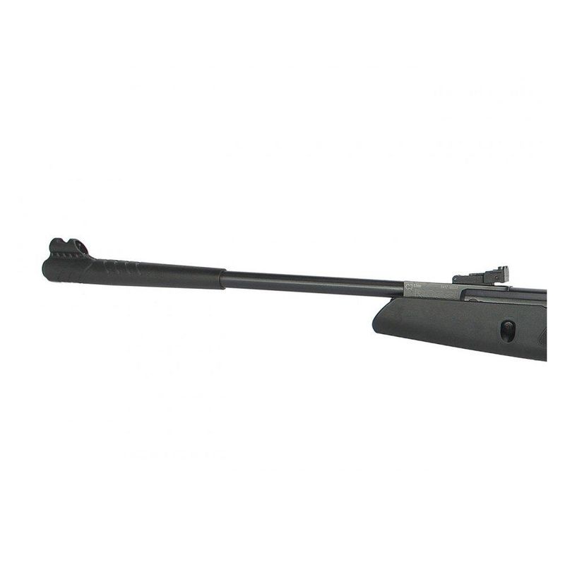 Conta com cano raiado em aço com acabamento de alta qualidade, que permite maior durabilidade mecânica da sua arma, além disso seu cano raiado permite o disparo de chumbinhos calibre 6.35mm com maior precisão e alcance.