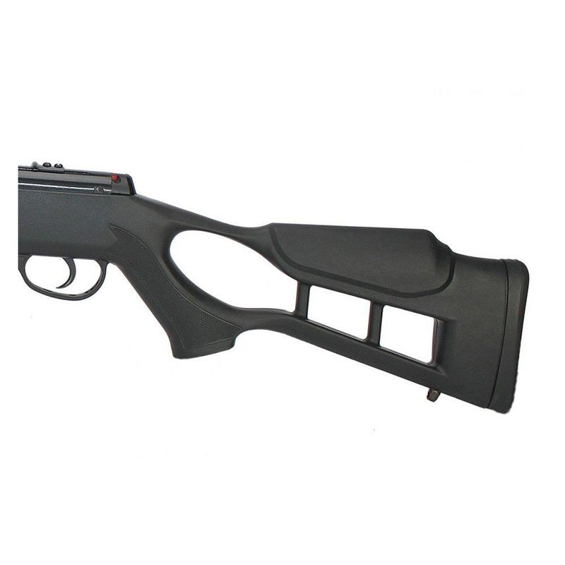 Como dito antes, seu modo de ação é através de Gás Ram 60kg instalado de fábrica, com tecnologia exclusiva da Hatsan. O Gás Ram permite disparos com muito mais velocidade e baixa taxa de manutenção, ideal para quem busca uma arma potente sem gastar muito.