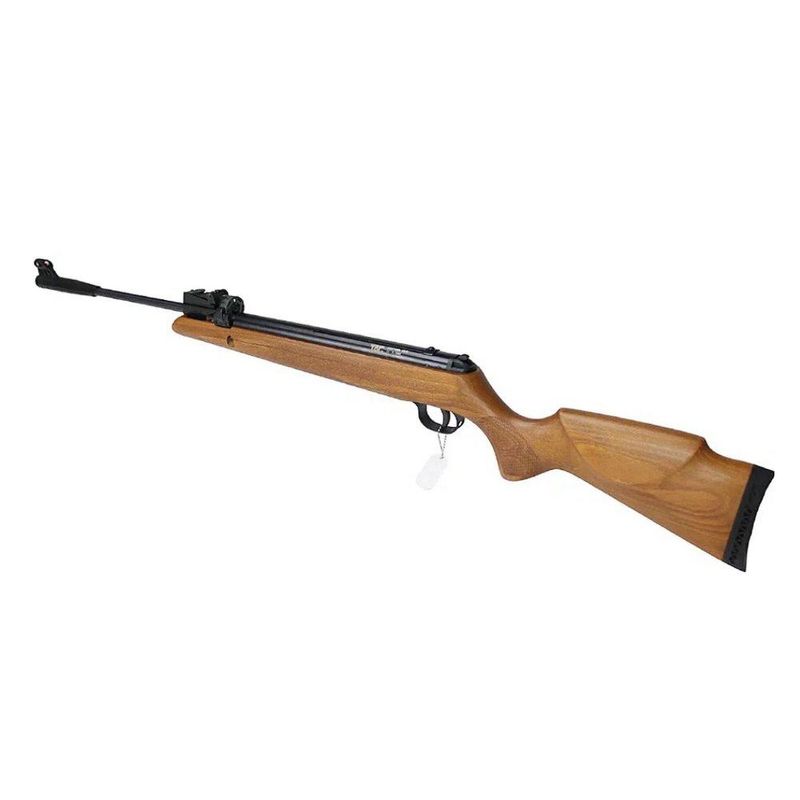 Conta também com cano em aço raiado, permitindo o disparo de chumbinhos no calibre 5,5mm, com maior velocidade e precisão. Além disso, na ponta do cano é possível localizar um supressor de ruídos, que diminui consideravelmente o som emitido pela carabina.