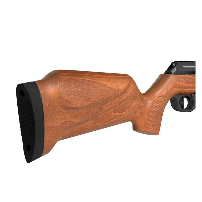 Esse modelo possui uma exclusiva coronha em madeira natural com acabamento premium da Artemis, fornecendo maior resistência, qualidade e durabilidade, sem comprometer o peso do equipamento. Além disso, a madeira fornece uma maior robustez para a carabina, tornando-a ideal para todos os tipos de uso.