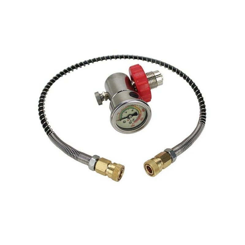 Para verificar a pressão inserida em sua arma, esse modelo possui manômetro integrado. Ainda assim, para manter o conforto, a T-REX possui soleira emborrachada e ajuste de bochecha, permitindo que o atirador regule o equipamento conforme sua anatomia.