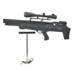 Carabina de Pressão PCP Nova Vista Bullpup Behemoth PS-R3-S 5.5mm Black com reguladora + Luneta 6-24x50 + Bomba PCP, é um dos mais novos modelos a chegarem ao mercado brasileiro em 2023, este projeto foi sucesso desde seu lançamento na Euro e USA. Produzida com estrutura Bullpup, coronha feito em polímero alta qualidade, cano de precisão de 60cm, válvula reguladora e uma mecânica que dispara a 40 joules de potencia. A PCP Behemoth PS-R3-S se destaca principalmente por sua alta capacidade de armazenamento, com 280 CC de tanque, ela proporciona incríveis 100 disparos coam uma única recarga.