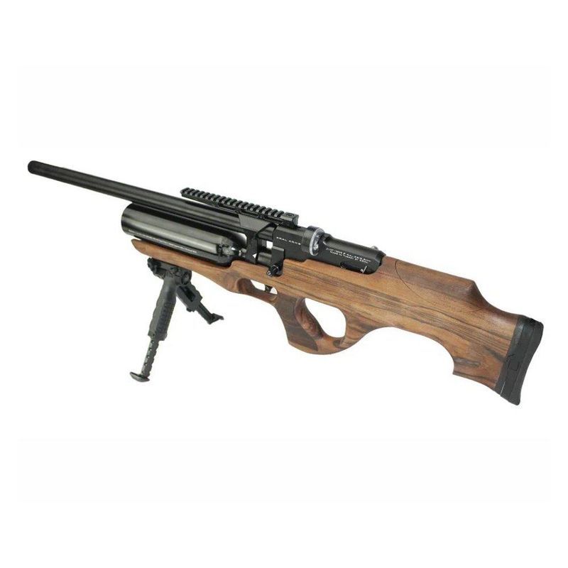 Com magazine pata 12 tiros, velocidade média de 900 fps / 274 m/s, comprimento total de 73 cm e peso de 3,95 kg. Vem com trilhos picatinny para acoplagem de acessórios. Gatilho em metal com fina regulagem. Sua coronha é Bullpup de Madeira Natural, com regulagem na bochecha e soleira de borracha. Tem sistema multishot e/ou mono tiro, com acionamento por alavanca lateral e trava de segurança manual.