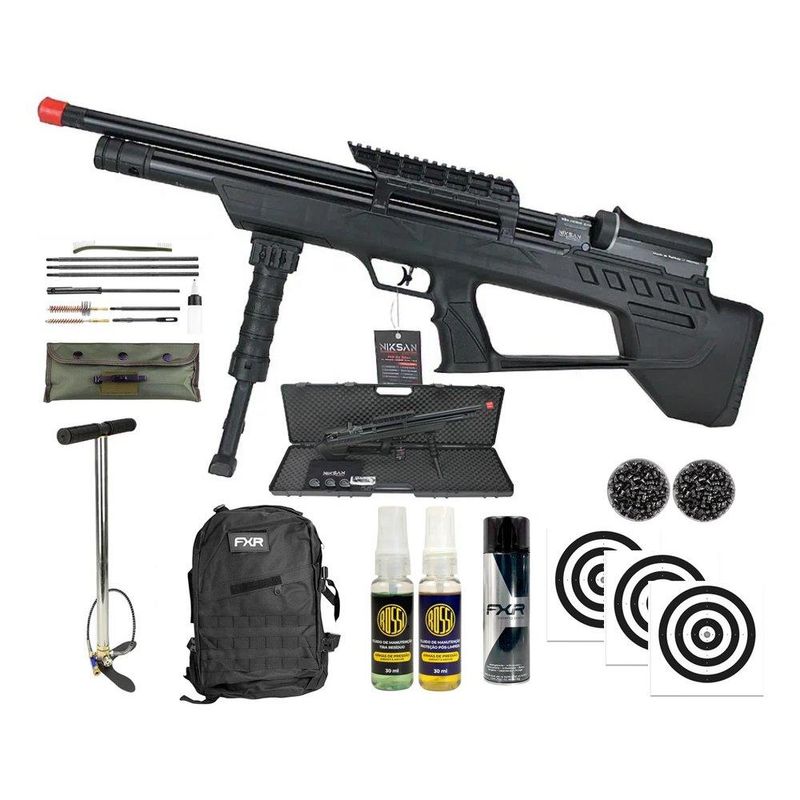 Carabina de Pressão PCP ELF S 5,5mm - Niksan + Bomba + Chumbo + Alvos + Kit Limpeza + Desengripante / Anticorrosivo + Kit Fluidos + Mochila Tática FXR