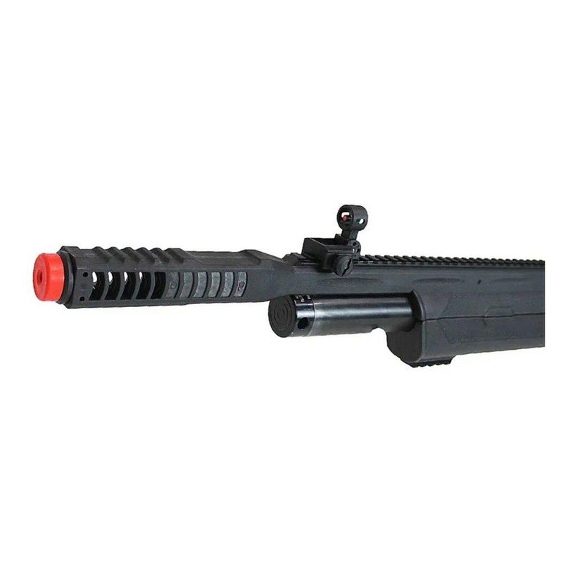Na parte superior é possível encontrar um trilho longo de 11 e 22 mm, com a possibilidade de acoplar vários acessórios táticos juntos, como lunetase red dots, aumentando a possibilidade de upgrades, possui também trilho inferior para acoplar bipés e front grips, auxiliando na pegada da arma.