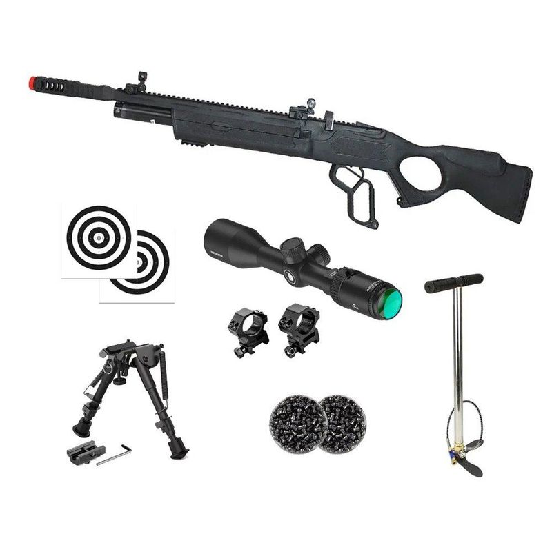 Obs: Os acessórios que acompanham os combos como compressor, bomba, luneta, capa, chumbo e demais itens podem sofrer variação conforme o estoque disponível, imagem meramente ilustrativa, em caso de dúvida entre em contato com um dos nossos vendedores para confirmar o item que está sendo enviado.