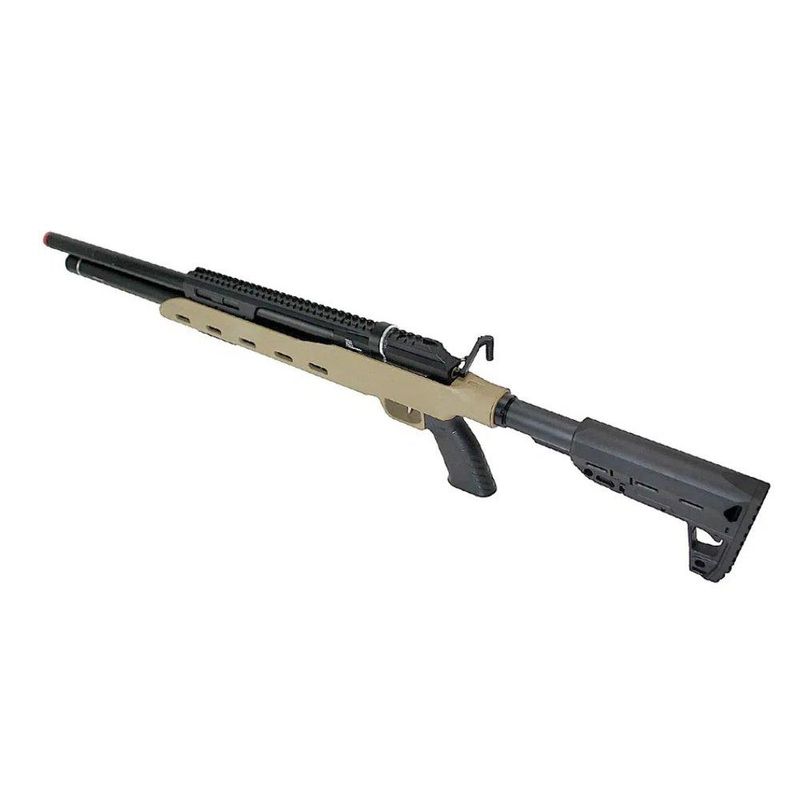 Seu modo de ação é através de ar comprimido pré carregado (PCP) e possui cilindro com capacidade de 245CC, com pressão máxima de trabalho de 250 BAR (3625 psi) e pressão mínima de trabalho de 100 BAR (1450 psi), o que pode fornecer uma autonomia aproximada de 60 tiros bons.