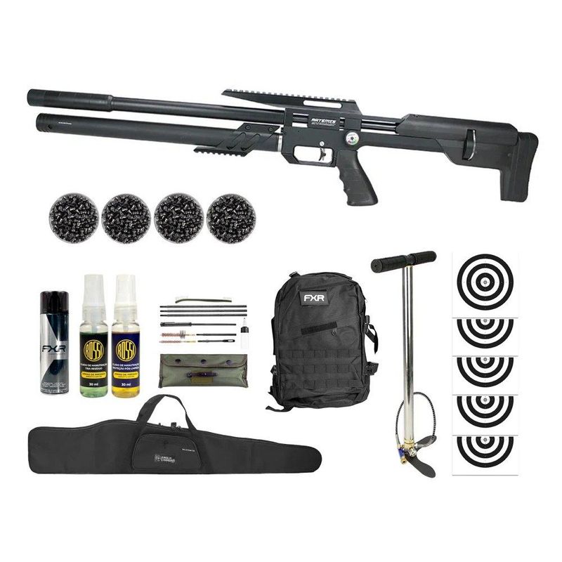 Carabina PCP Artemis M60 Bull Pup 5.5 Slayer Black 20 Tiros - FXR Artemis + Bomba + Kit de Limpeza + Desengripante + Kit fluidos + Chumbos + Alvos + Capa + Mochila Tática FXR