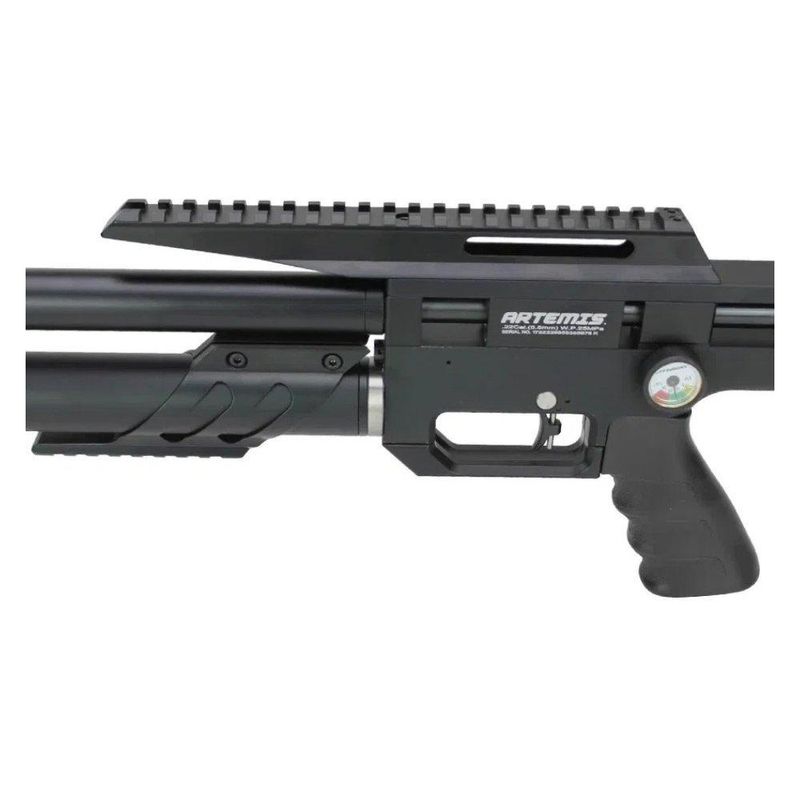 O trilho Picatinny de 20/22mm permitirá que você monte sua PCP com uma Luneta de sua escolha, aconselhamos luneta de tamanha igual ou superior a 4-16 de amplitude, pois ira facilitar os disparos a grandes distancia. . Outro trilho de montagem é colocado sob o cilindro de ar e serve como local para prender um bipé ou outro acessório tático semelhante. como lanternas de acionamento remoto, para ações noturnas.