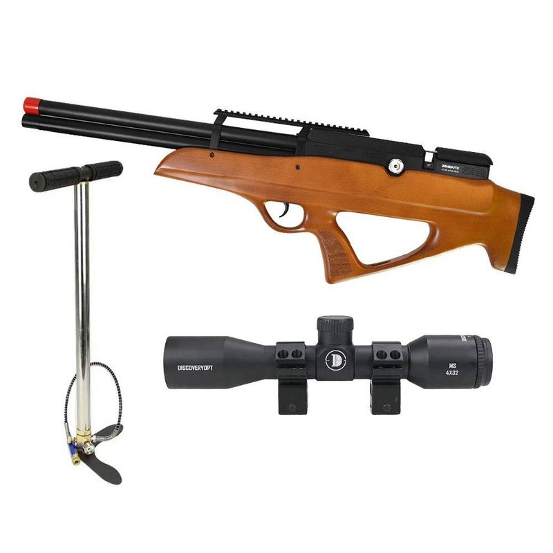 Itens Inclusos: 1x Carabina de Pressão PCP Nova Vista Bullpup Behemoth PS-R2-SF 6,35 mm Wood, 2x Magazines do Tipo Tambor Rotativo para 10 Chumbinhos Cada, 1x Manual de Instruções, 1x Bomba de Enchimento, 1x Luneta 4x32