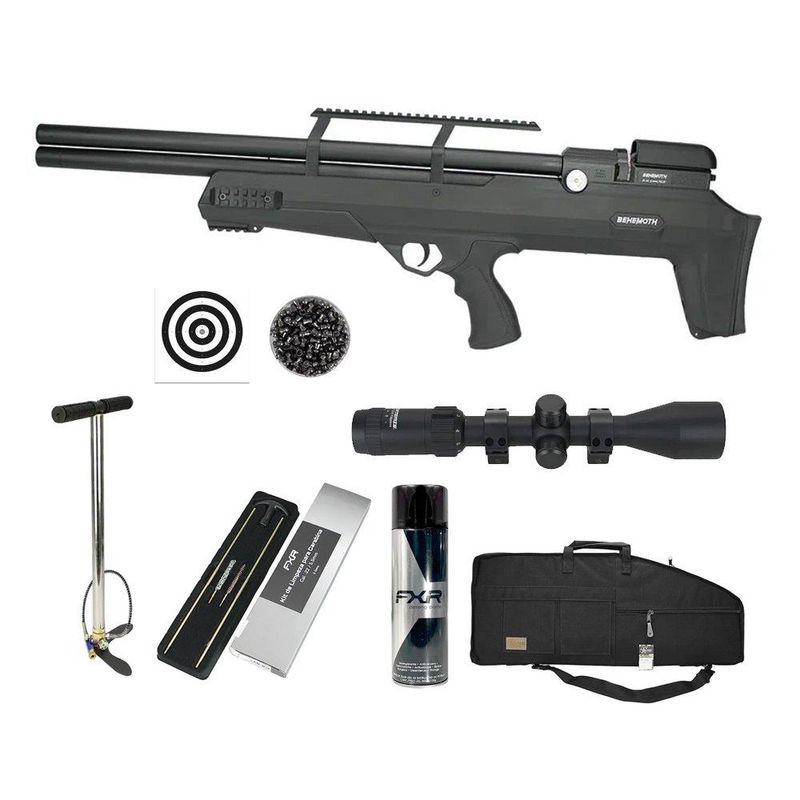 Carabina de Pressão PCP Nova Vista Bullpup Behemoth PS-R2-S Black 5.5mm com reguladora + Case/Capa Militari + Bomba + Luneta 3-9x40 + Chumbo + Alvos + Kit de Limpeza + Desengripante / Anticorrosivo