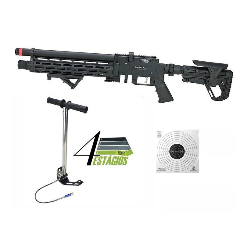 Carabina PCP Puncher Mortal X Tactical 5.5 + Bomba 4 Estágios + Alvos