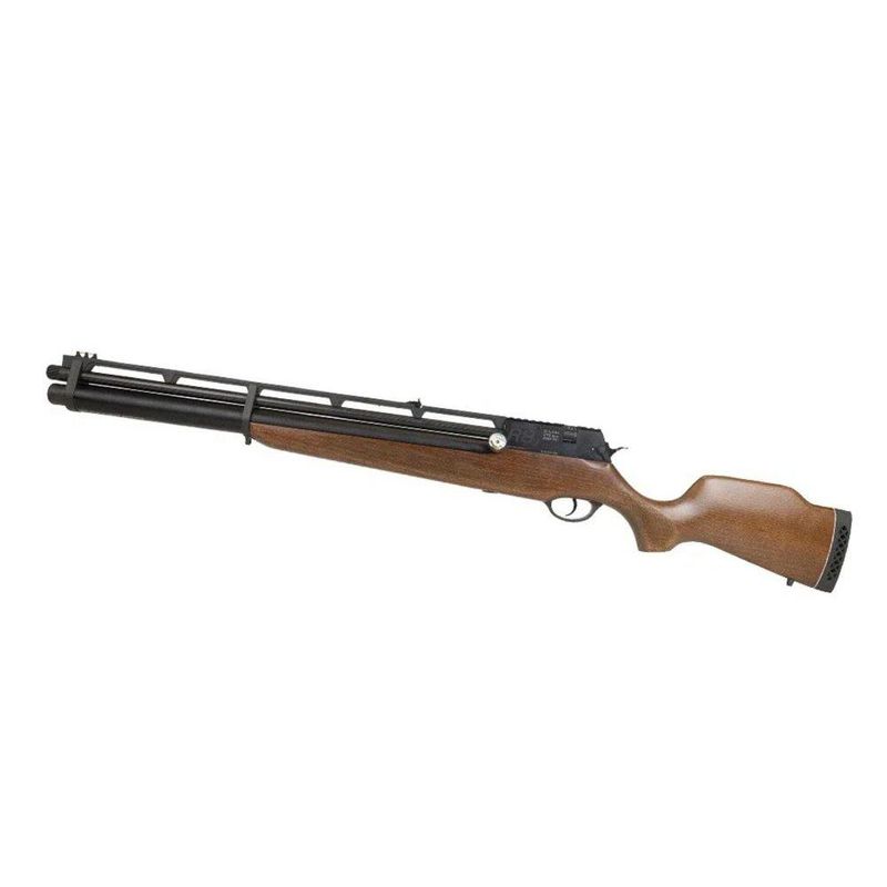 Para melhorar ainda mais, esta versão possui coronha em madeira maciça resistente, proporcionando maior qualidade, durabilidade e força, ideal para todos os tipos de uso. Além disso, conta com cano em aço e tubo com acabamento em fibra de carbono, que fornece um design robusto e desafiador para a carabina.