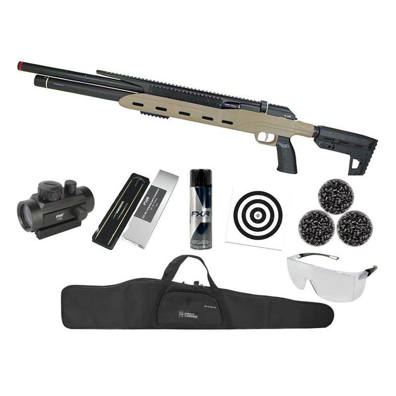 Carabina PCP Semi-Auto M50 Tempesta Desert 5,5mm QGK/SPA Artemis + Red Dot Tático + Capa + Kit Limpeza + Chumbos + Alvos + Desengripante / Anticorrosivo + Óculos de Segurança