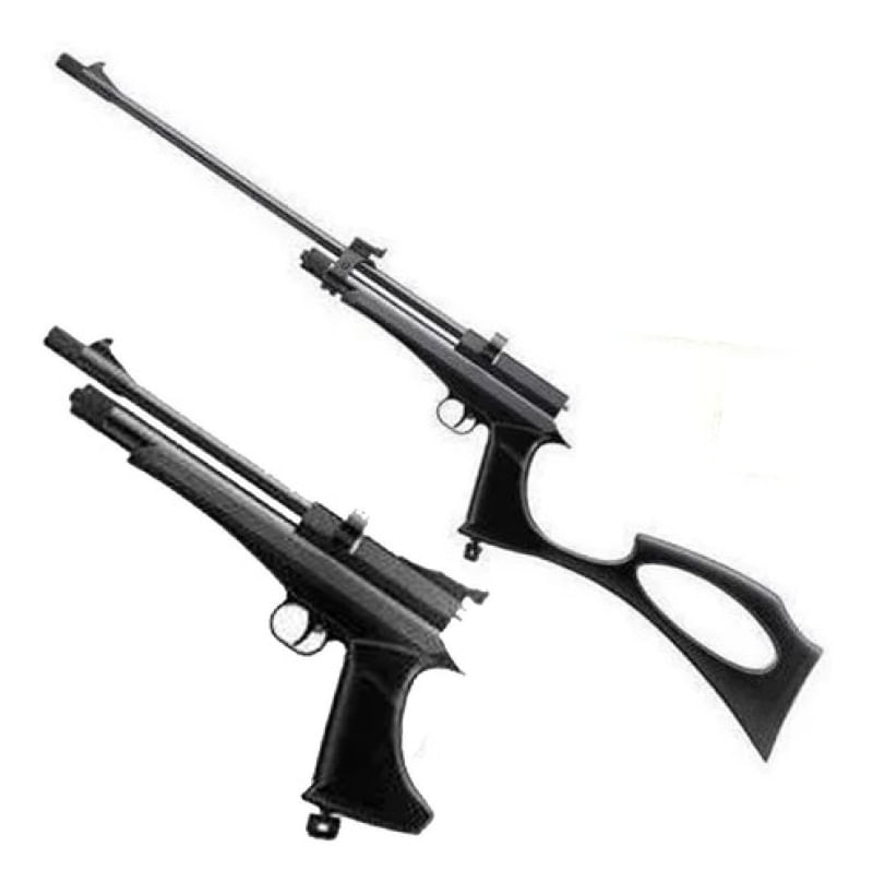Maior inovação do momento, a Carabina / Pistola de Pressão Híbrida Co2 5.5mm, é uma nova linha de carabinas híbridas que possui adaptação para ser transformada em pistola ou carabina. Adquirindo esse kit consegue-se transformar a pistola em uma carabina de potência excelente e grande precisão. A Carabina Cobra 5.5mm, consegue atingir velocidade com cano curto de 122m/s (400 FPS) e velocidade com cano longo de 152m/s (500 FPS). Cano longo e curto possui miras individuais que podem ser ajustadas a parte.