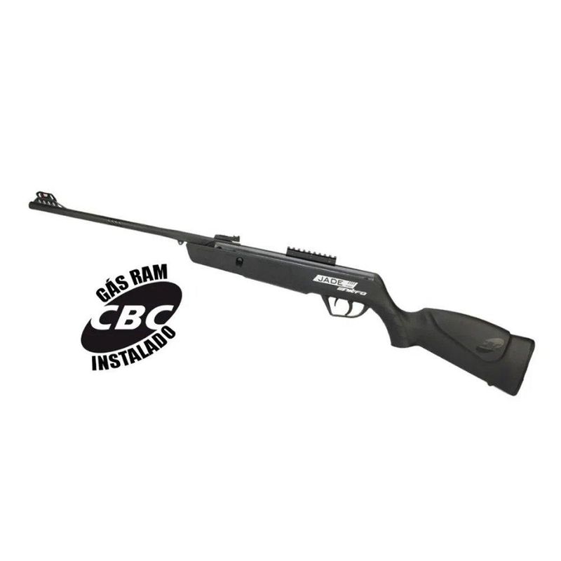 A Jade MAIS NITRO já vem com Gás Ram instalado pela CBC. Sua coronha é de polipropileno com grip anti-derrapante e guarda mato integrado.Ela Vem também com um trilho tipo Picatinny removível de 20/22mm, para adaptação de acessórios. Suas miras são com fibra óptica, alça com regulagens micrométricas na horizontal e vertical, sua massa de mira é protegida por um túnel que pode ser removível. Vem com trava de segurança automática e ambidestra acoplada ao gatilho, além de sistema anti disparo com cano aberto. Kit acompanha Caoa, Bandoleira, chumbinho, alvos e limpador Kamuff.