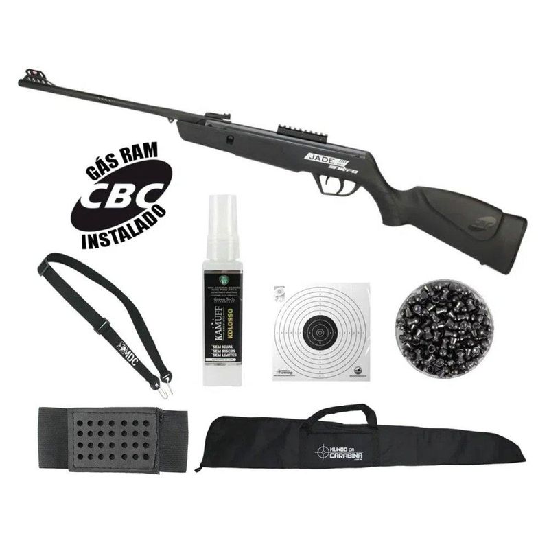 Carabina De Pressão Cbc Jade Mais Nitro Preta Cal 5,5mm + Capa + Bandoleira + Chumbinho + Porta Chumbinho