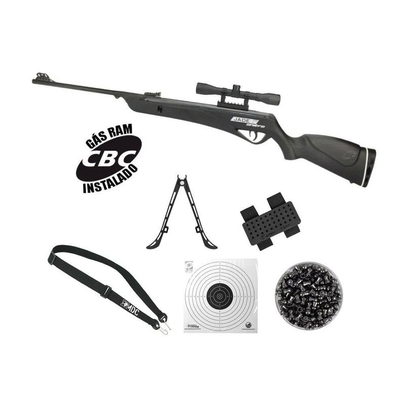 Carabina De Pressão Cbc Jade Pro Nitro Oxidada Preta 5,5mm + Luneta 4x32 + Bipe + Chumbinho