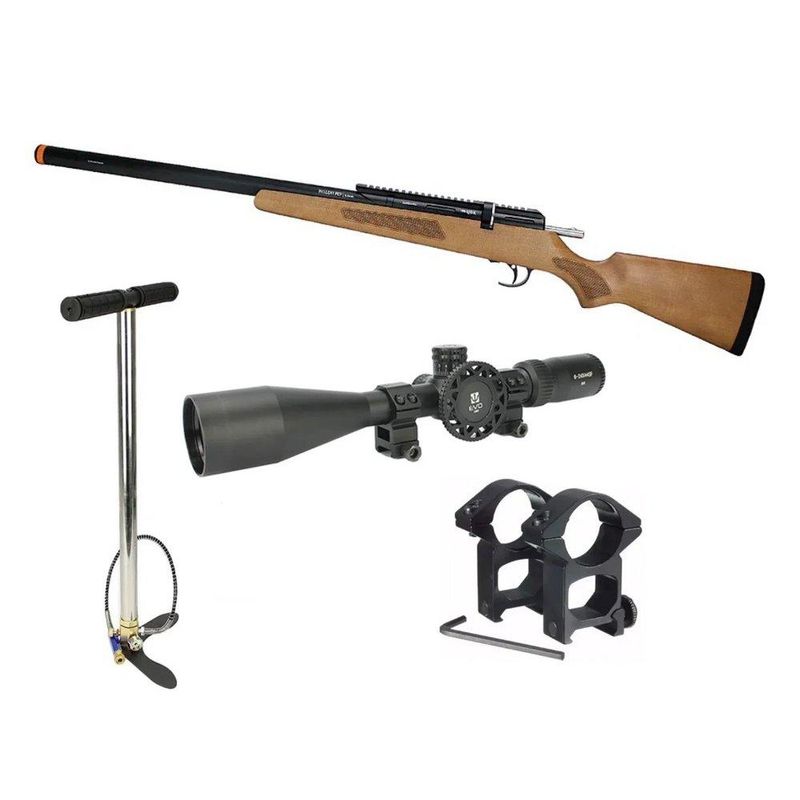 Carabina De Pressão Pcp Hellcatt M30 Multishot Madeira 5,5mm + Bomba + Luneta 6-24X44 Catraca