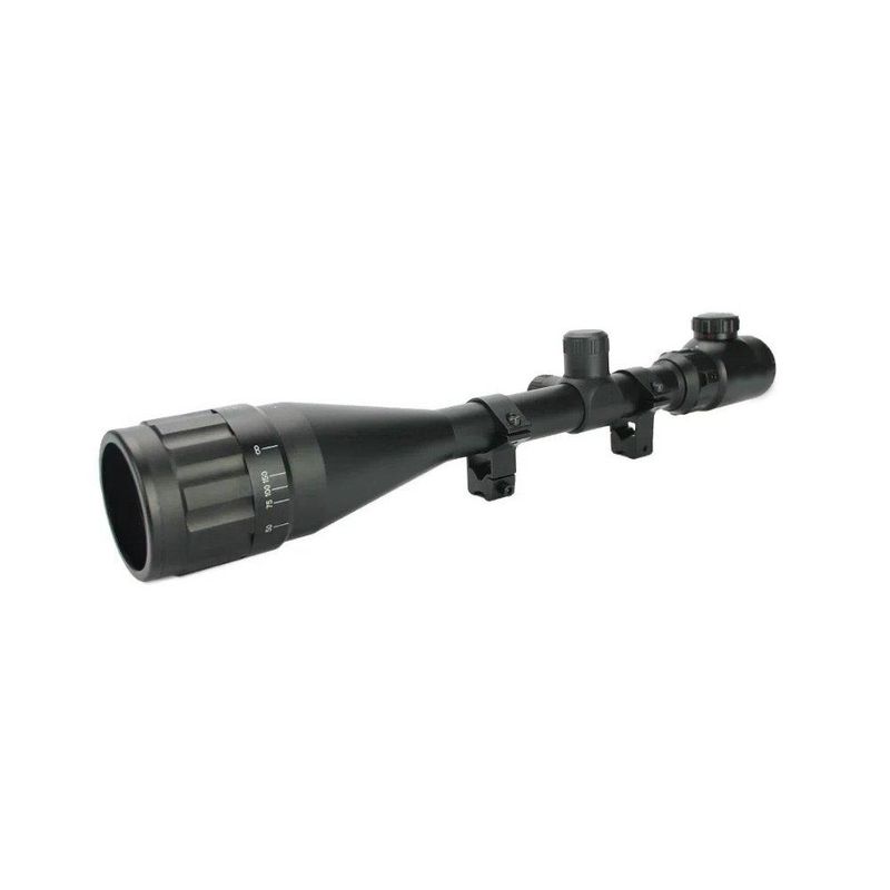Para complementar a sua Carabina, este modelo acompanha a Bomba Manual Pneumática 300 BAR da Fixxar + Luneta 6-24x50 com retículo iluminado Mil-Dot Parallax da Quick Shot, demais né?