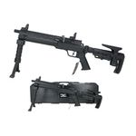 Conta também com trilho superior picatinny de 22mm ideal para acoplar acessórios táticos como lunetas e red dots. Além disso, conta com trilho inferior para acoplar bipés, nesta versão o modelo acompanha um front grip que pode ser utilizado também como bipé para tiros apoiados.